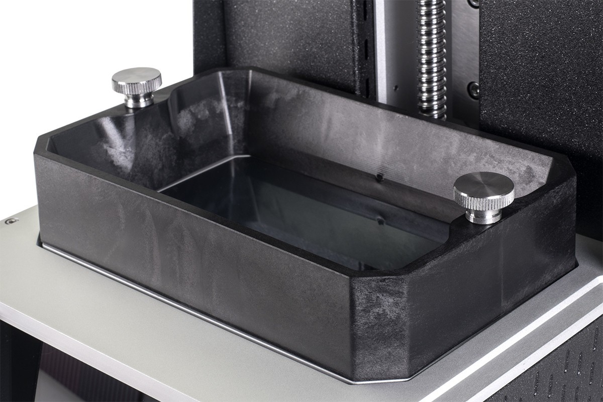 Das Kippen des Harzbehälters ist eines der Hauptmerkmale des SL1S SPEED und bietet einen erheblichen Mehrwert im Vergleich zur Konkurrenz. Nachdem jede Schicht ausgehärtet ist, kippt das gesamte Display mit dem Bottich. Das ermöglicht ein sanfteres Ablösen des Modells von der FEP-Folie, eine kontinuierliche Harzmischung im Bottich und vor allem ein viel schnelleres Drucken.