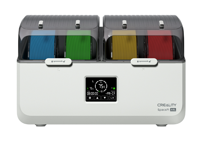 Mit dem Creality SpacePi X4L Filamenttrockner halten Sie Ihr Filament trocken, stabil und bereit für herausragende 3D-Druckergebnisse. Dieses leistungsstarke Trocknungssystem wurde für Hobbyanwender und Profis gleichermaßen entwickelt und gewährleistet eine gleichbleibende Druckqualität sowie die Reduzierung häufiger, feuchtigkeitsbedingter Druckprobleme.